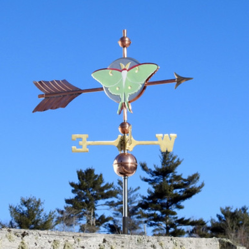 Luna Moth Weathervane Made in USA Elevate your outdoor space with the enchanting Luna Moth weathervane, a stunning piece that transcends mere functionality to become a work of art. Handmade in the USA by renowned artist Paul McElvain, this exquisite weathe