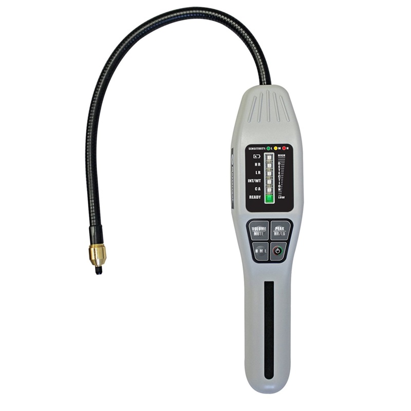 - ON/OFF, Volume/Mute, Sensitivity for High, Medium and Low level selection, Peak button when multiple leaks are suspected