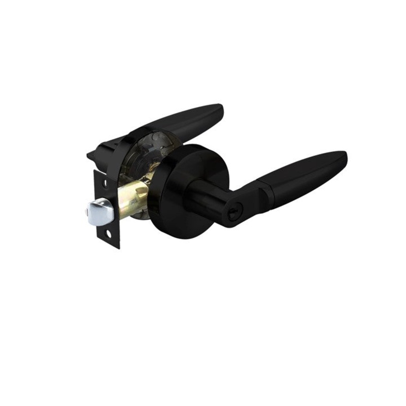 Description(4333MB) Doyle Series Entrance Lock Set Matt BlackAnodised matt black finish, the finish is more refined andscratch resistant than the powder coatingA solid, well-shaped handle with a mixture of round and oval elementsSolid zinc alloy constructi