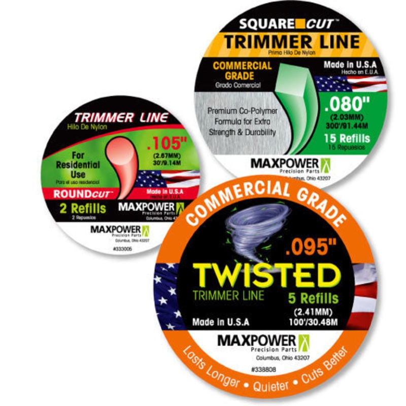 MaxPower’s Twisted Trimmer Line is designed to be the quietest, toughest, best-cutting and longest-lasting trimmer line on the market today. Our line is MADE IN THE USA from commercial grade, premium, Co-polymer resins. The high-impact graphics and optic yellow line color will make this line fly from your shelves.