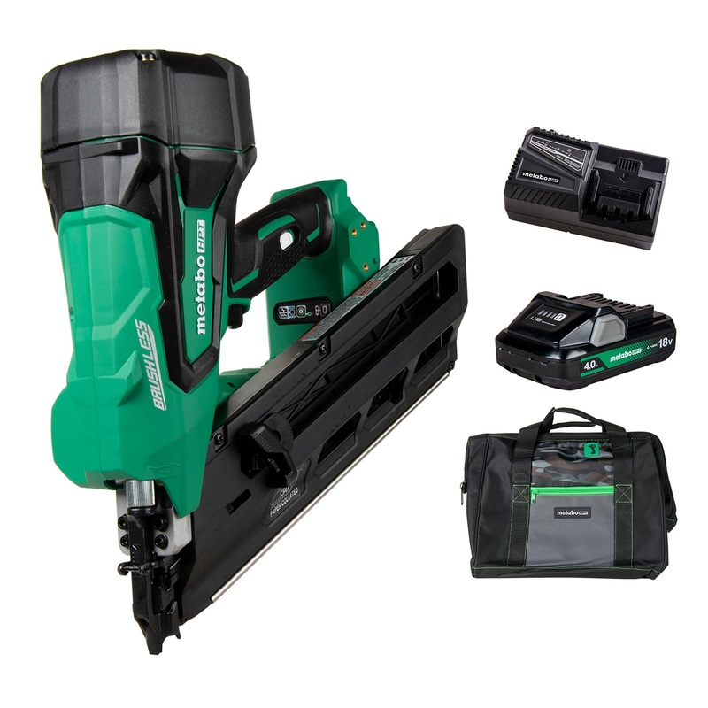 Metabo HPT Cordless 18V MultiVolt Framing Nailer Kit Accepts 2-Inch to 3-1/2-Inch Clipped & Offset Round Paper Nails 1-18V 4.0Ah Li-Ion Battery w/Fuel Gauge Lifetime Tool Warranty NR1890DCST