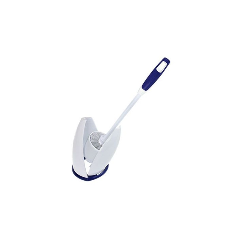Large round brush for easy cleaning. Decorative enclosed caddy for easy storage. Non-slip base.