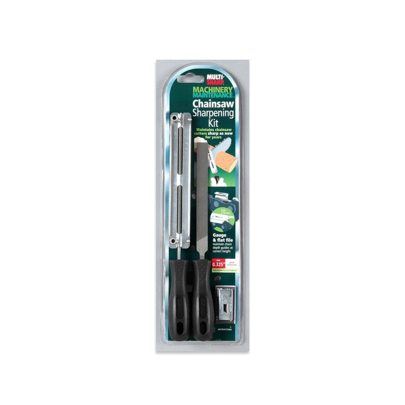 Chainsaw Sharpener Kit 3/16" 4,8mmThe Multi-Sharp Chainsaw Sharpening Kit restores a sharp new cutting edge to the cutters of a chainsaw, without having to remove the chain.The kit includes a depth gauge and a flat file to maintain the right cutter-to-dept