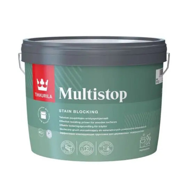 Multistop is a water-based primer designed to minimize discoloration caused by wood oils, resin, and tannin migration. It serves as both a primer and intermediate coat for untreated or previously painted/varnished (excluding specific parquet lacquers) wood surfaces in dry indoor spaces, whether they are new or old. This primer acts as a protective barrier, preventing the migration of substances that could cause discoloration over time, ensuring a stable and visually appealing finish. Its water-based nature makes it user-friendly for interior applications, offering versatility and protection against potential discoloration concerns on various wood surfaces.