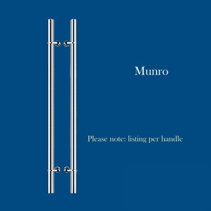 DescriptionBoldly simple in design or should we say simply elegant?This listing is for a single Munrodoor pullMade of premium grade of 304 stainless steelFull satin stainless steel finishSuitable for glass, timber and aluminium doors from 5mm to 50 mm thic