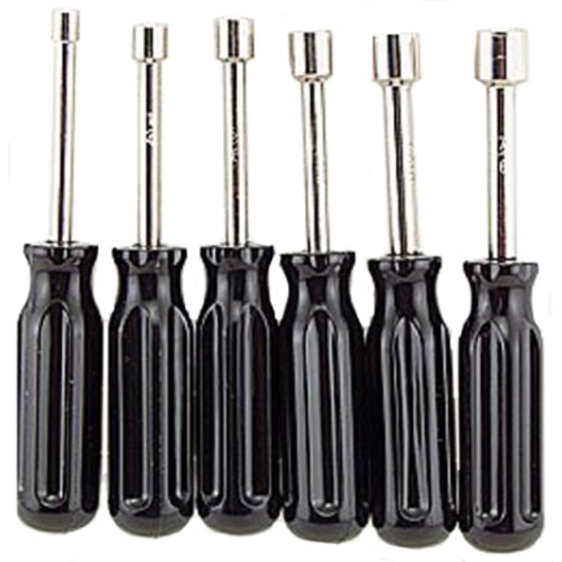 Includes sizes: 3/16″, 1/4″, 5/16″, 3/8″, 11/32″, 7/18″. Plated finish. Heavy duty shock resistant plastic handles. Carded.