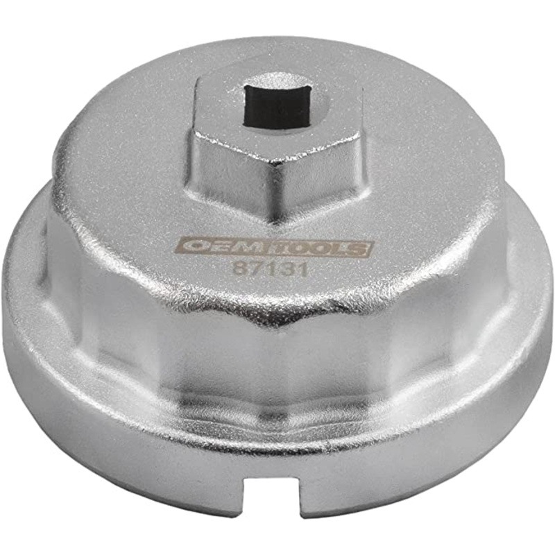 The OEMTOOLS 64.5 mm, 14 Flute Oil Filter Wrench is perfect for removal and replacement of aluminum threaded caps that retain oil filter cartridges. It is perfect for use with Toyota Camry, RAV4, Tacoma, Highlander, Sienna, Tundra and more. It is designed to remove overtightened oil filter housings for easy replacement, and correctly sized to prevent slipping during installation.
