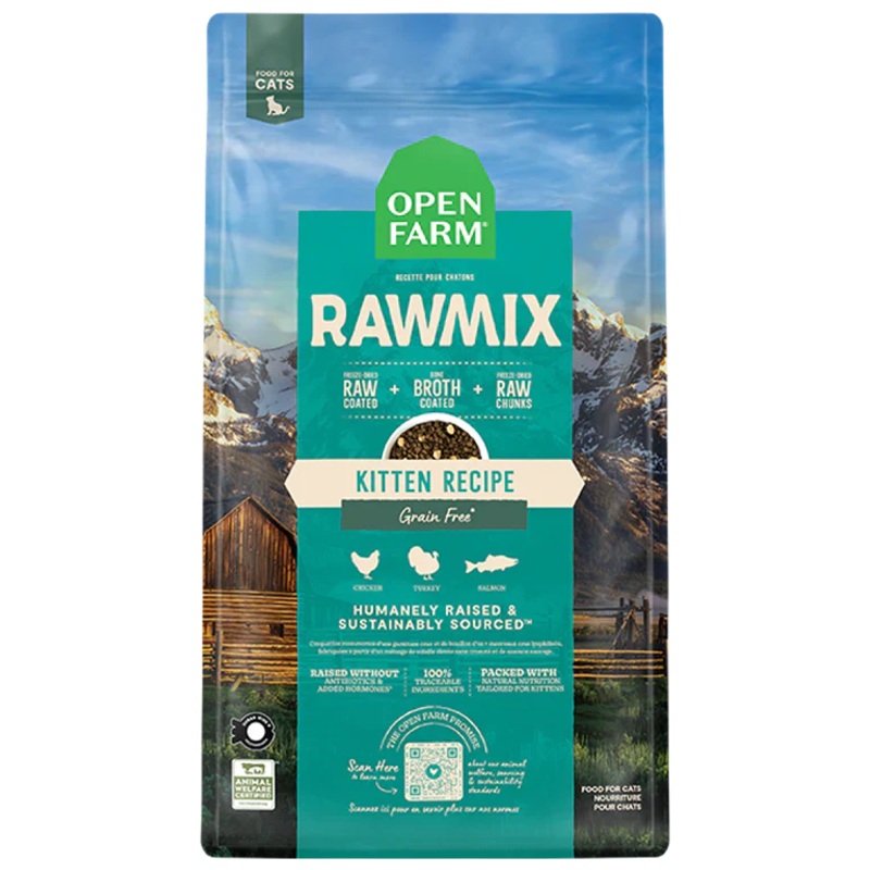 Open Farm RawMix Kitten Recipe Cat Food is formulated to meet the nutritional levels established by the AAFCO Cat Food Nutrient Profiles for All Life Stages.