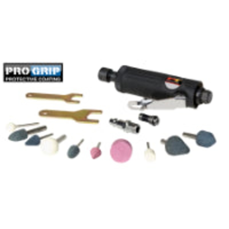 Contents: Die Grinder, (5) 1/4″ shank mounted stones, (5) 1/8″ shank mounted stones, 1/4″ and 1/8″ collets, 2 collet wrenches, storage case