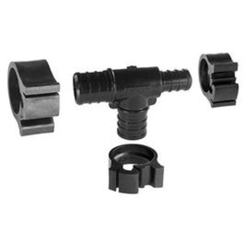 3/4″ x 1/2″ x 3/4″, pexlock reducing tee, rated at 180 degrees at 100 psi & 73 degrees at 200 psi, nsf & csa approved for new building behind wall & underground application, for installation use a pair of slip joint pliers, 25 year warranty.