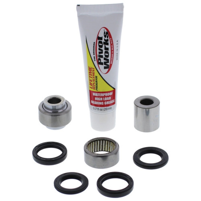 Pivot Works Shock Kits match OEM for fit and performance Rebuilds both pivot points of the rear shock Kits contain spherical bearings or full complement needle bearings, seals, collars, and pins to complete the installation Restores like-new performance Ev