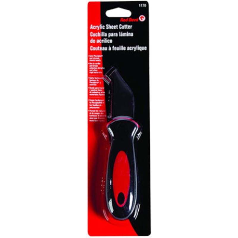 Fast and easy way to scribe and break acrylic plastic sheets. Molded plastic handle, super-sharp steel blade. For plexiglass, acrylic, and plastic. Carded.