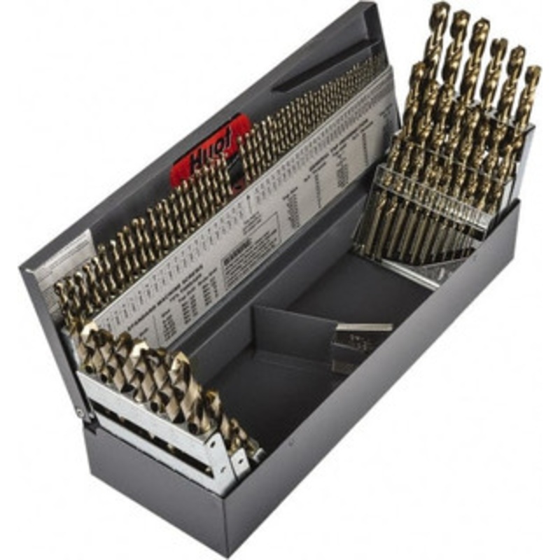 Precision Twist Drill 1/16 to 1/2", 135 Point, Gold Finish, Cobalt Jobber Length Drill Bit Set 115 Piece, Split Point, Straight Shank, Series R10CO, R15CO & R18COManufacturer Part #: 5995679S/N: 78582558UNSPSC: 27112800(Minimum Order Quantity=1, Package Qu