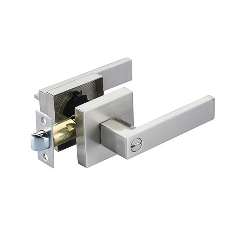 DescriptionThe ultimate in contemporary design, the handles look flawless, they are top of the range doorwareRobust construction of solid alloy with satin nickel finish (looks like stainless steel)Snib lock from inside, emergency release button from outsid