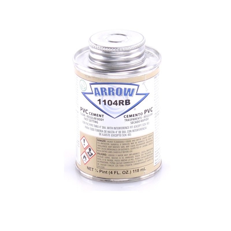 - 1104RB is a regular bodied, fast setting PVC cement for use on all schedules and classes of PVC pipe and fittings up to 4″ diameter with interference fit (except Sch. 80).