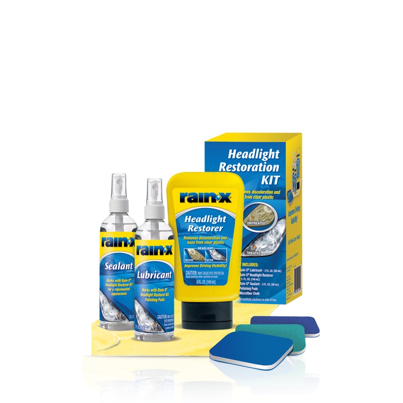 The RainX Headlight Restoration Kit provides a dee p clean to yellowed, hazed headlights with the use of a specially designed polish and sealant.