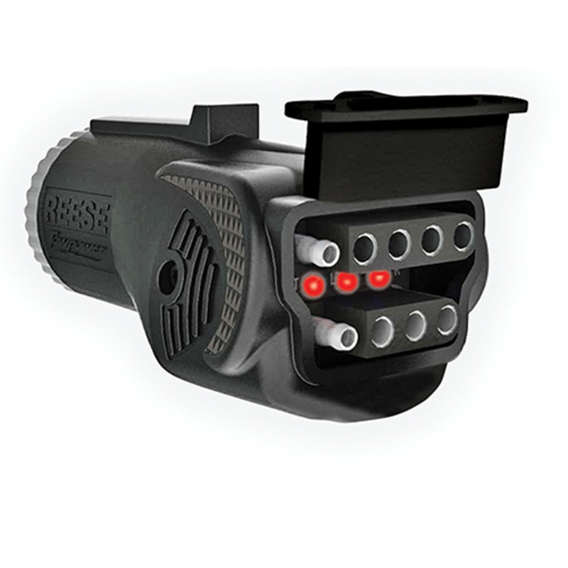 This REESE Towpower towing adapter converts a 7- way blade connector to a standard 4 or 5-way flat connector. It features highly visible, cool blue LED circuit tester for instant completed circuit confirmation. Not only can you adapt the trailer to vehicle fast, but you can be certain the connections are correct.