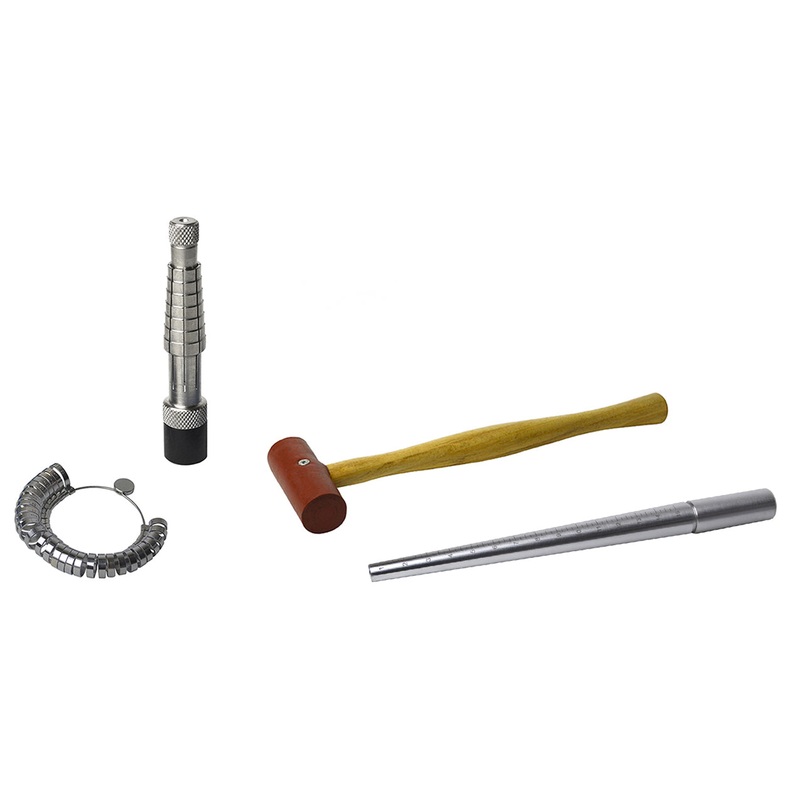 Ring Stretcher w/ 1" Rawhide Hammer Ungrooved Steel Mandrel and SizerThis ring stretcher and sizer kit includes the following supplies:(1) Rathburn Ring Stretcher: Enlarger for enlarging jewelry band rings, the Rathburn stretcher consist of 2 parts and inc