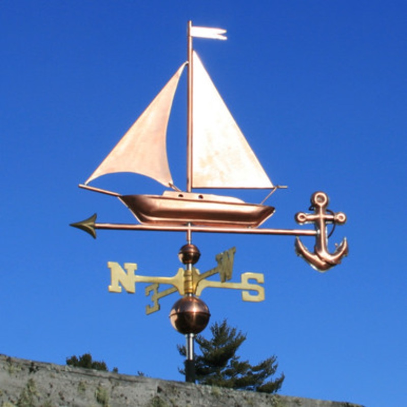Sailboat Weathervane - Made in USA Elevate your outdoor spaces with our exquisite Sailboat with Anchor Weathervane, a stunning piece of American craftsmanship that combines functionality and artistry. Made in the USA from heavy-duty copper, this 3D weather