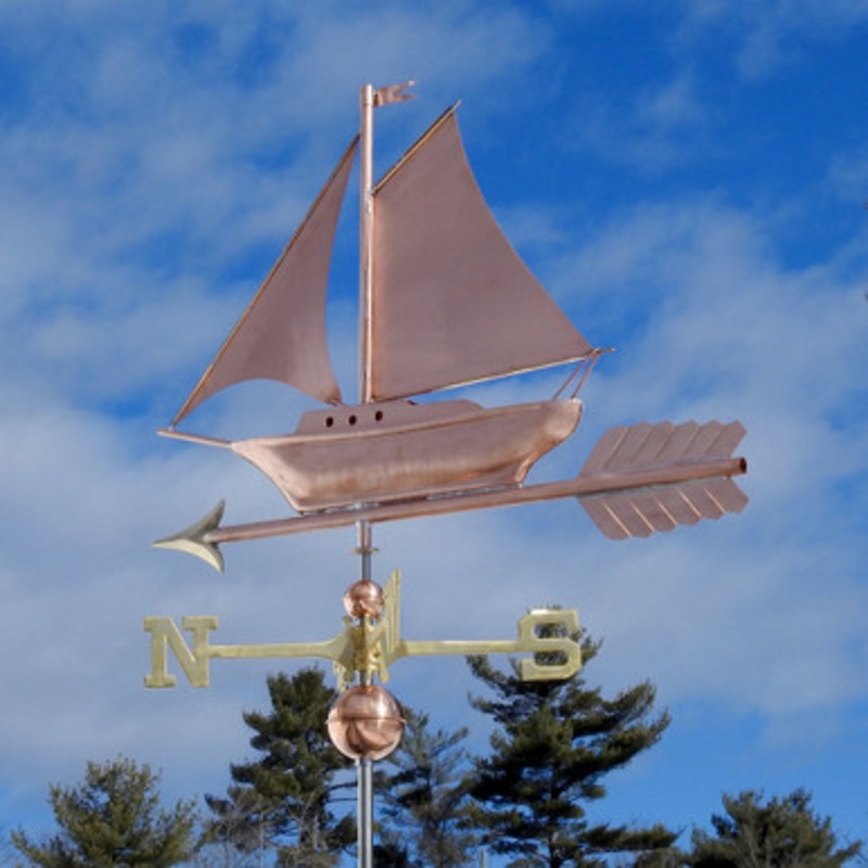 Large Sailboat Weathervane Made in USA Set sail into a world of elegance and durability with our handcrafted copper sailboat weathervane, a true testament to high-end craftsmanship made right here in the USA. This stunning nautical piece is designed not on