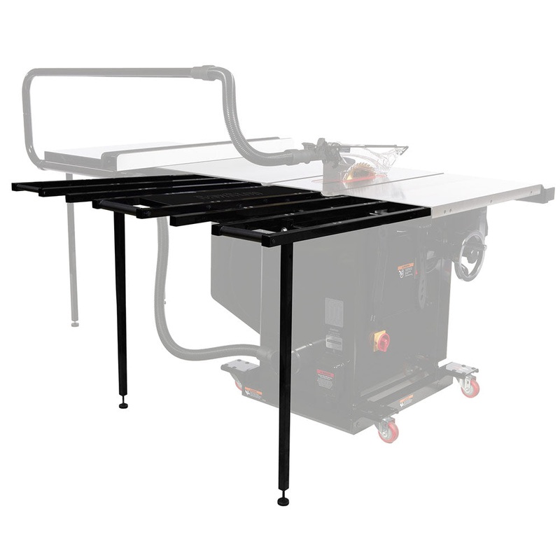 Engineered from steel for maximum carrying capacity, the outfeed table is sized to match the width of your cast iron table and wings. The table is designed for easy adjustability and maximum glide, with strategically-placed rollers for smooth operation. Co