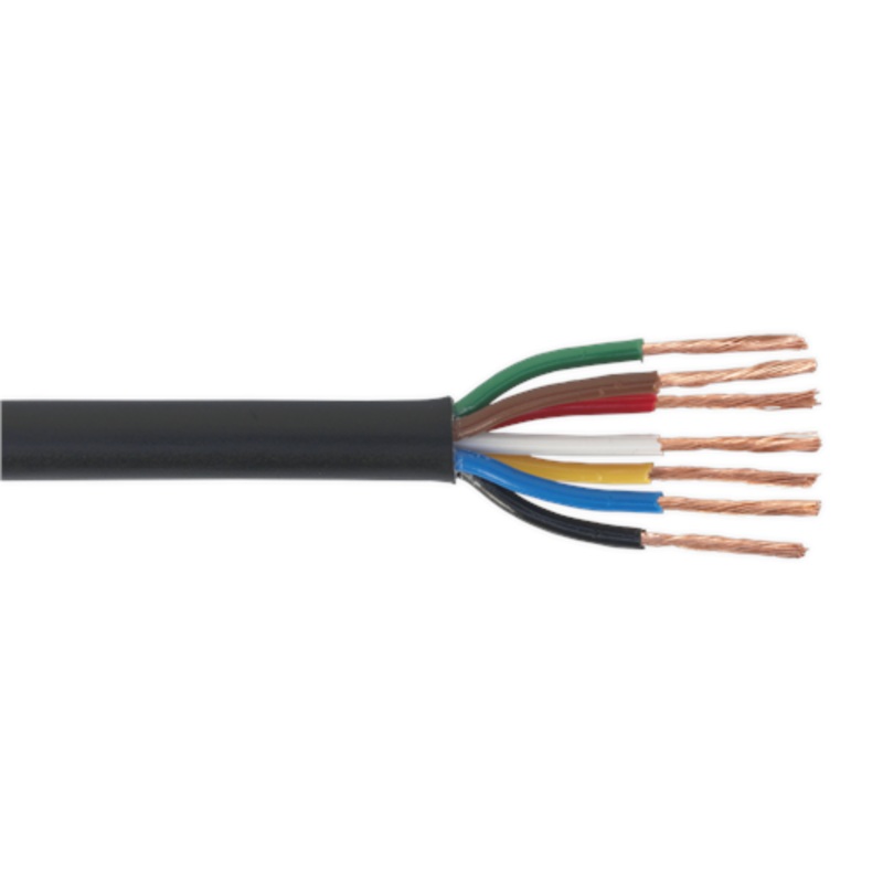 Thin wall automotive cable. Seven core conductor. Core Colours: Black, Blue, Brown, Green, Red, White, Yellow. Cross Section: 7 x 0.75mm. Current Rating: 14A. RoHS Compliant.Thin wall multi-core cable supplied on a cardboard reel. RoHS compliant. Thin wall