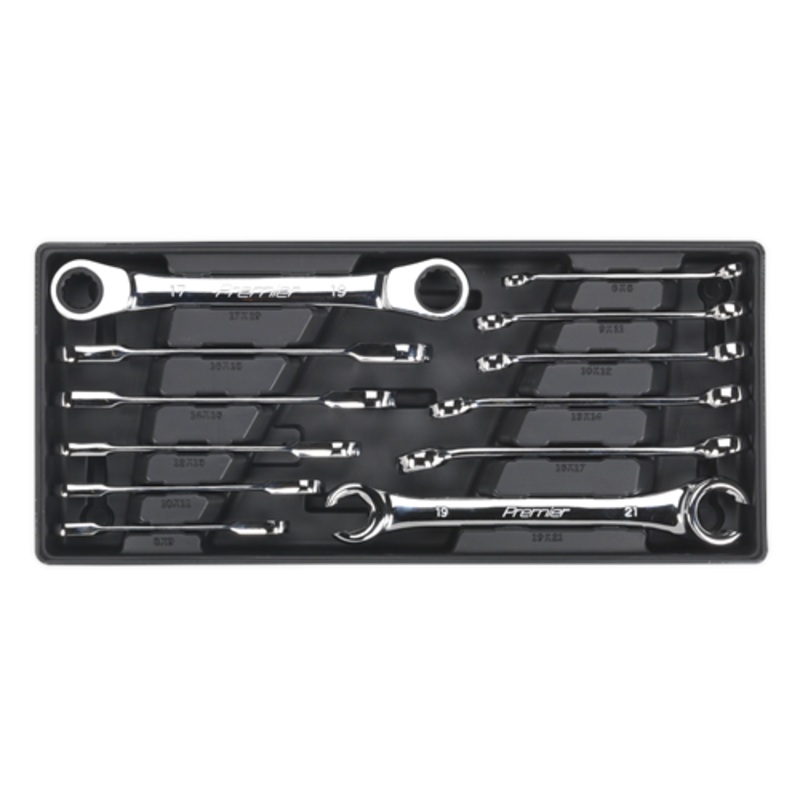 Sealey Premier Tool Tray with Flare Nut & Ratchet Ring Spanner Set 12pc