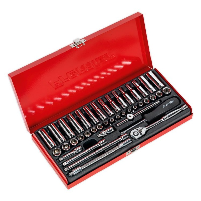 One of a comprehensive range of Premier Hand Tools, suitable for daily professional use.Deluxe professional socket set, heat treated Chrome Vanadium steel WallDrive sockets.Fully polished mirror finish.Flip reverse gear-to-gear ratchet, quick socket releas