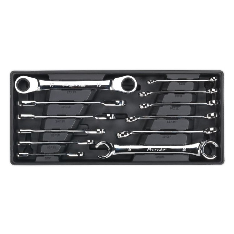 Sealey Tool Tray, Flare Nut & Ratchet Ring Spanner Set 12pc (Premier)
