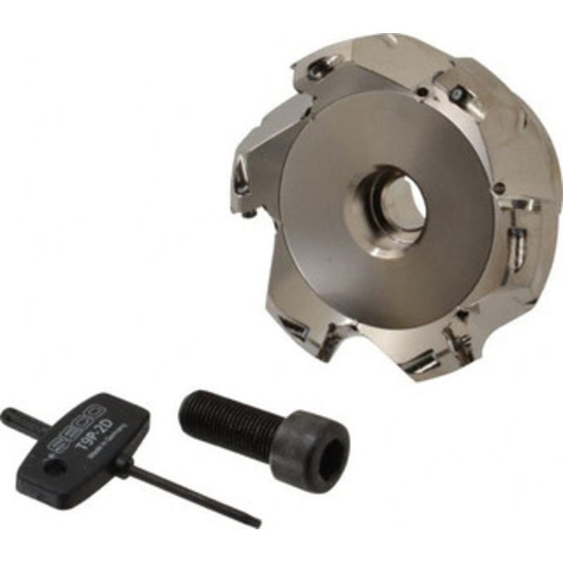 Seco Tools 3.15″ Cut Diam, 1″ Arbor Hole, 0.18″ Max Depth of Cut, 45 Indexable Chamfer & Angle Face Mill Takes 6 Inserts, SE 09T3 Insert, Right Hand Cut, 6 Flutes, Through Coolant, Series R220.53