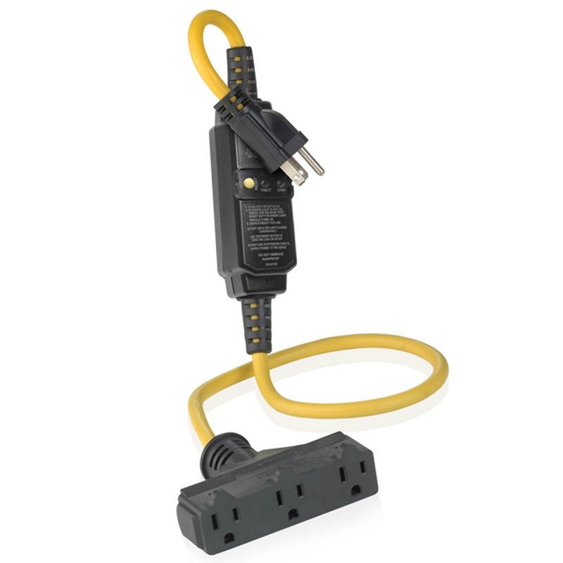 Self-Test Cord Set GFCI, 15 Amp, 120 Volt, 3 Feet, Automatic Reset, 14-3 SJTW Cord, Molded on NEMA Plug (5-15P) and Triple Connector (5-15R), Black
