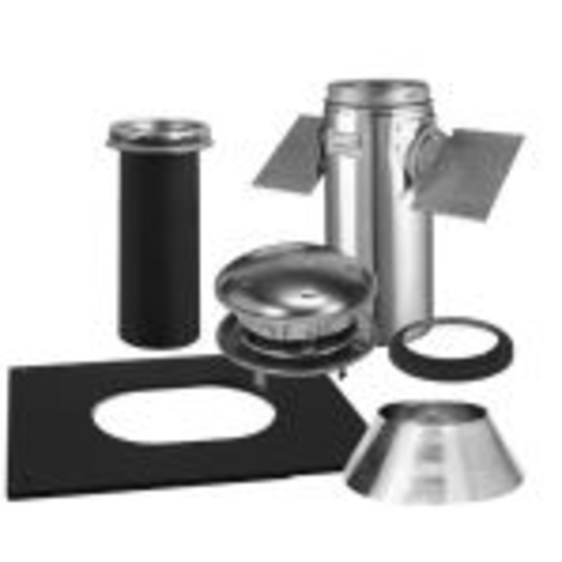 For installation of a chimney in a cathedral or pitched ceiling such as standard A-Frame construction. The Pitched Ceiling Support Kit provides all necessary parts for a complete installation with the exception of the required Insulated Pipe Lengths and Ad
