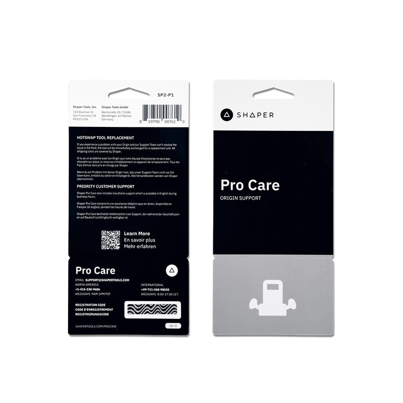 With Shaper Pro Care, you’ll have access to their Hot Swap tool replacement service, reducing the possibility of project delays.If you experience a problem with your Origin and Shaper’s support team is unable to resolve the issue in the field, the tool will be immediately exchanged for a replacement unit. All costs are covered by Shaper.