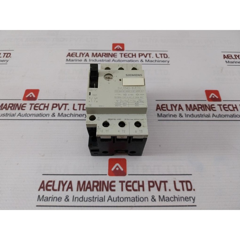 Siemens 3Vu1340-1Ml00 Circuit Breaker Iec 60947-2 600 Vac 50/60 Hz 120A 6 KvSiemens3Vu1340-1Ml006-10A120AVde 0660Iec 60947-2Iec 60947-4-150/60HzCat. AAc-3Uimp: 6Kv11E1245L25 Fla Max600Vac MaxTrip Amps Are 125%Class 10ATorque: 12 Lb.In/1.4NmUse Cu Wire 75C