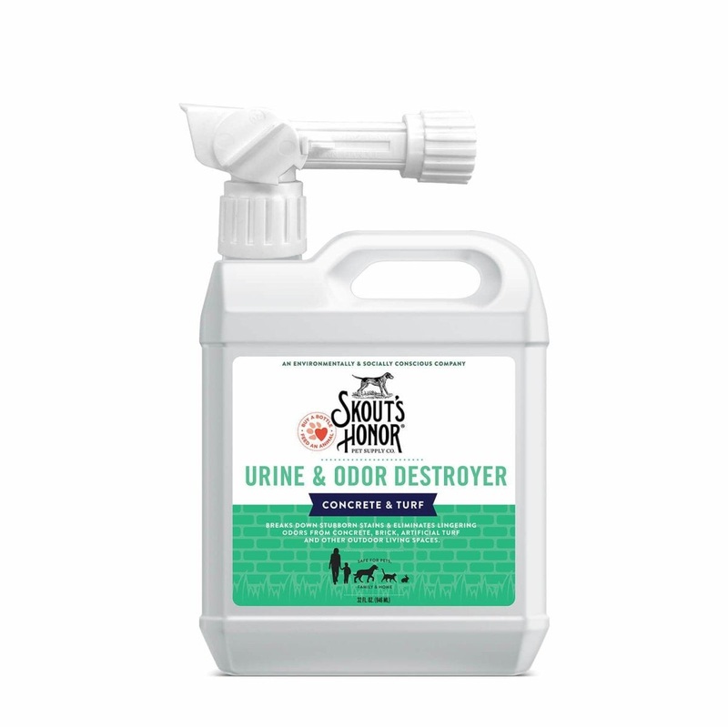 URINE & ODOR DESTROYER CONCRETE & TURFFinally, a powerful and easy-to-use solution to destroy stubborn pet stains and odors from your favorite outdoor living spaces! Simply attach to a hose and spray on concrete, brick, artificial turf, outdoor furniture/u