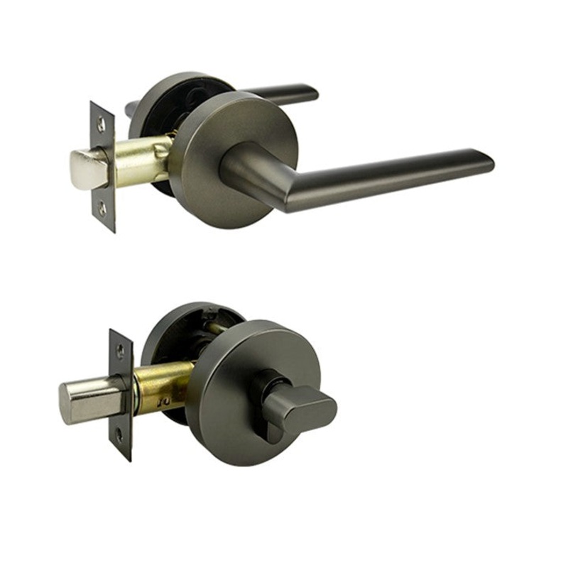 Description65mm round backing plate with a solid, flawlessly designed oval-shaped handleSolid zinc alloy construction with a grey gunmetal finishSuitable for both left and right-hand opening doorsTapered handle bracket with a slimline oval handleSuitable f