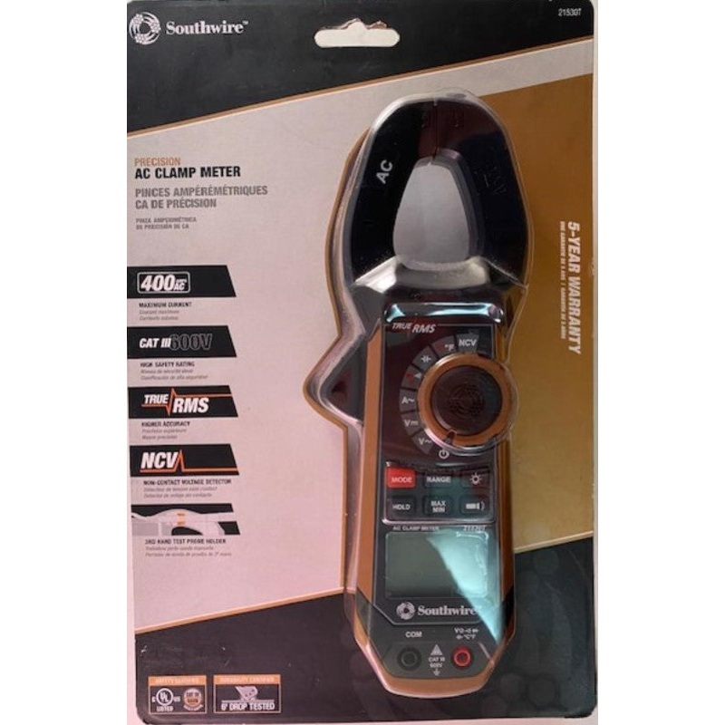 Southwire 21530T AC Clamp Meter 400AC CAT III 600V True RMS400A AC clamp Meter with True RMS offers the features needed for the professional electrician.400A AC current rangeCAT III 600V safety ratingTrue RMS accuracyBuilt-In non-contact voltage tester