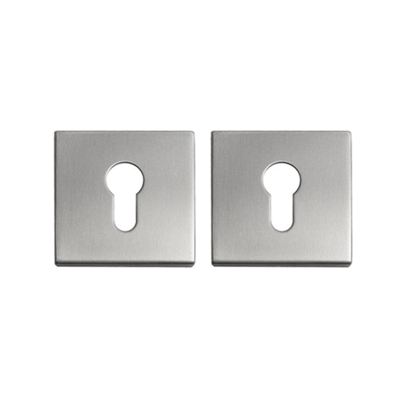 DescriptionOne pair square escutcheon plates 53mm x 53mmBrushed stainless steel finishSits 8mm out from the door surfaceHidden screw mountScrews includedAlso available in matt black finish
