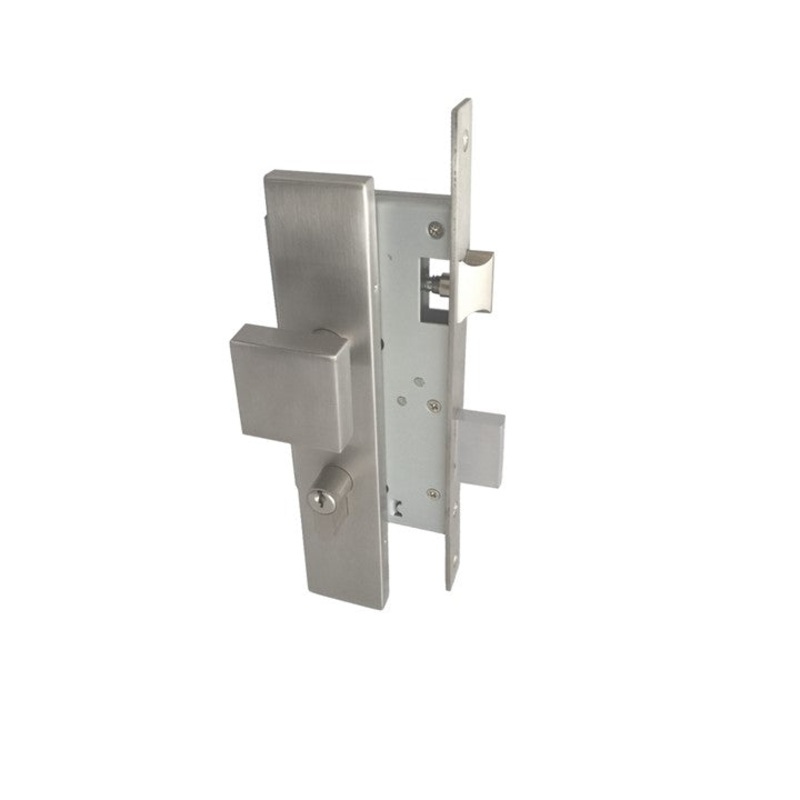 DescriptionMortice lock set with no handle on the outside, and square knob handle on the insideIdeal for use in conjunction with single entrance pull handleBrushed stainless steel finishKey locking and unlocking the deadbolt, as well unlatching the latch t