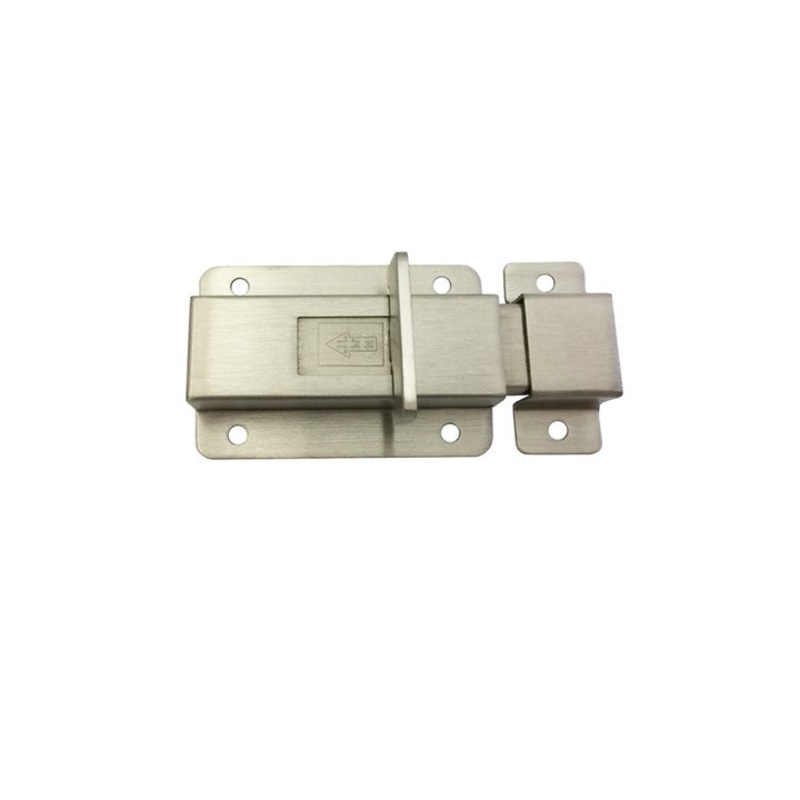 DescriptionRectangular surface mounted door boltGrade 304 stainless steel construction with brushed stainless steel finish92mm in length and 22 mm widthManual push slide to lock/unlockBolt extends 20mm when lockedMatching finish screws are included