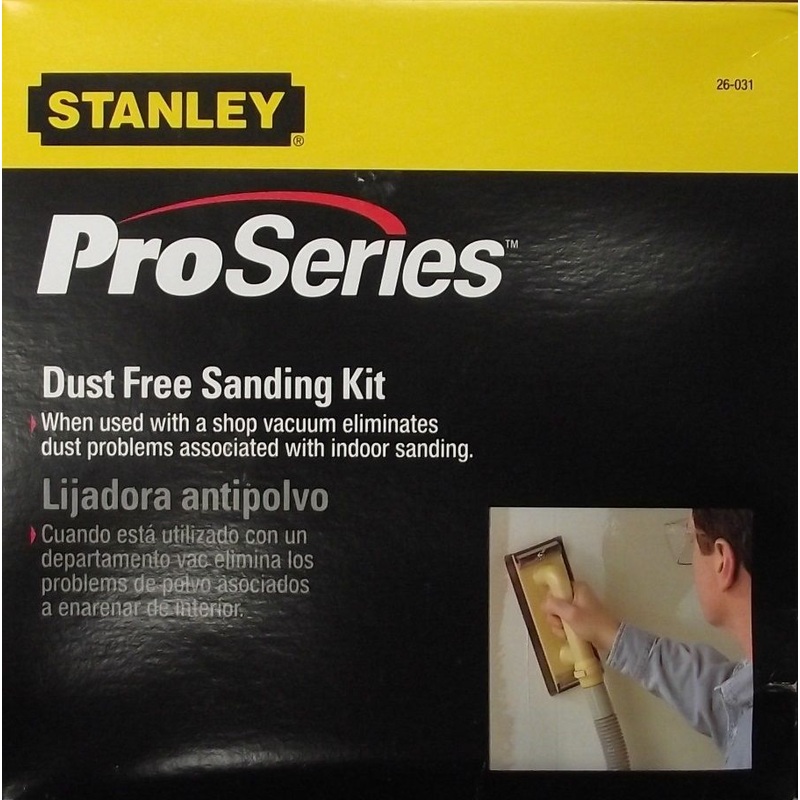Stanley 26-031 Dust Free Drywall Sanding Kit w/Hose & Adapters CanadaWhen used with a shop vacuum eliminates dust problems associated with indoor sanding. Dust free sanding kit includes shop vac hose & attachments, sanding pad and sanding screen.Made in Ca