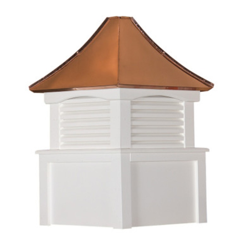 This cupola is available in maintenance-free vinyl and is weathervane ready with a 3/4 inch rod opening. Designed for up to a 8/12 pitch. Cupola roof is covered with 24 gauge copper, patina copper or black aluminum trim coil.