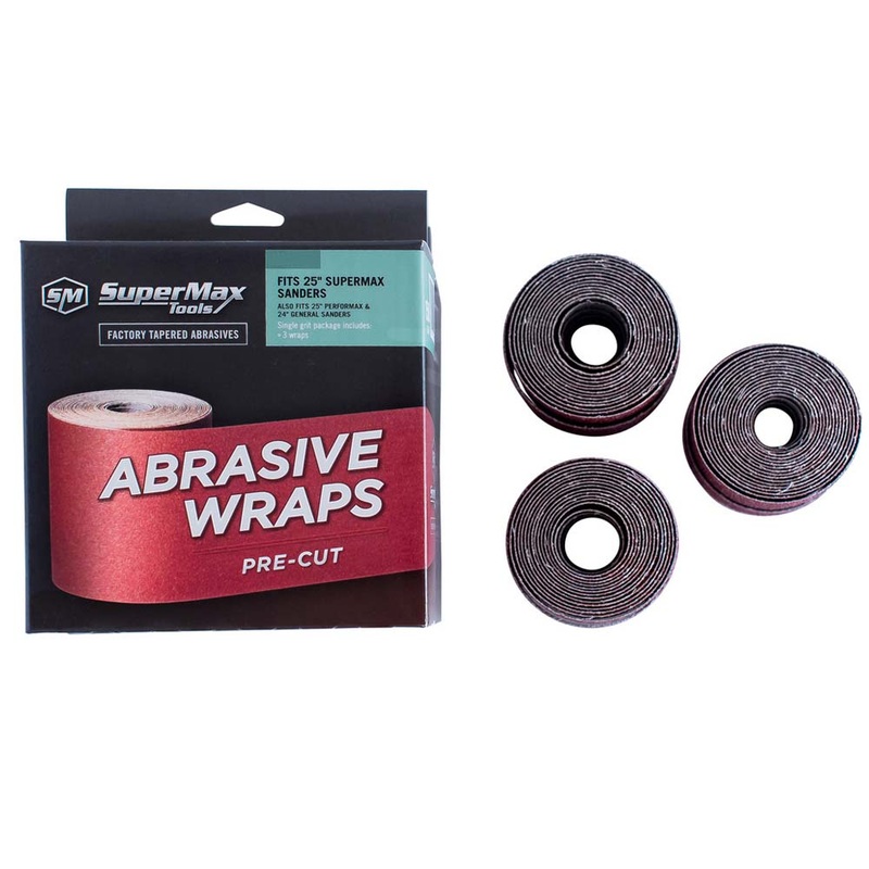 Fits standard 25" drum sanders from SuperMax and Performax and 24"GENERAL brand drum sanders.These tapered abrasive wraps are pre-cut and ready to be installed on your sander.Choose your grit from the drop-down menu.Includes 3 wraps of the same grit per bo