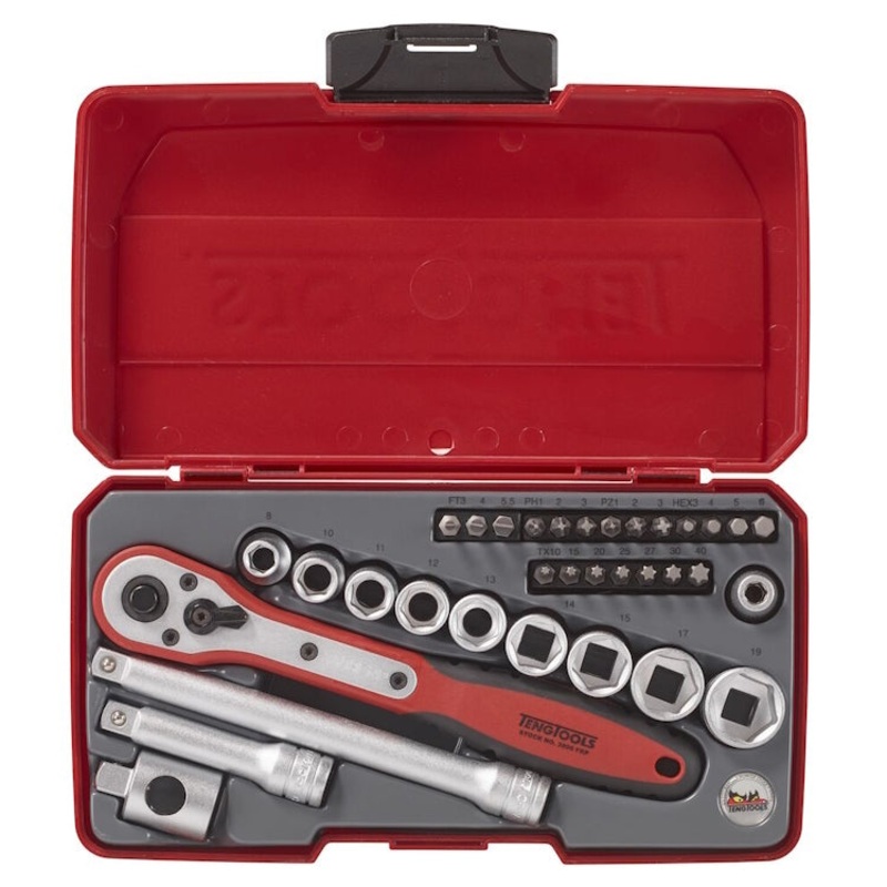 Regular 6 point single hexagon sockets for a better gripChrome vanadium satin finish socketsA selection of screwdriver, hex and TX bitsSupplied in the unique Teng Tools case with a snap lockHard wearing hinge with a metal pin for longer lifeDesigned and ma