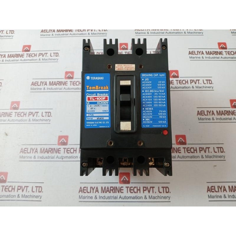 Terasaki Electric Tl-100F Tembreak Circuit Breaker 60A 3Pole 120Ka Ac220VTerasaki Electric Co., Ltd.TembreakCircuit BreakerTl-100FUi: Ac690V41-2095760AAc220V 120Ka3 PoleYsas1241-a/KYsas1247-a1/KShunt Trip200-480V 50/60HzN-fy.O.Made In JapanWeight: 3.060 Kg