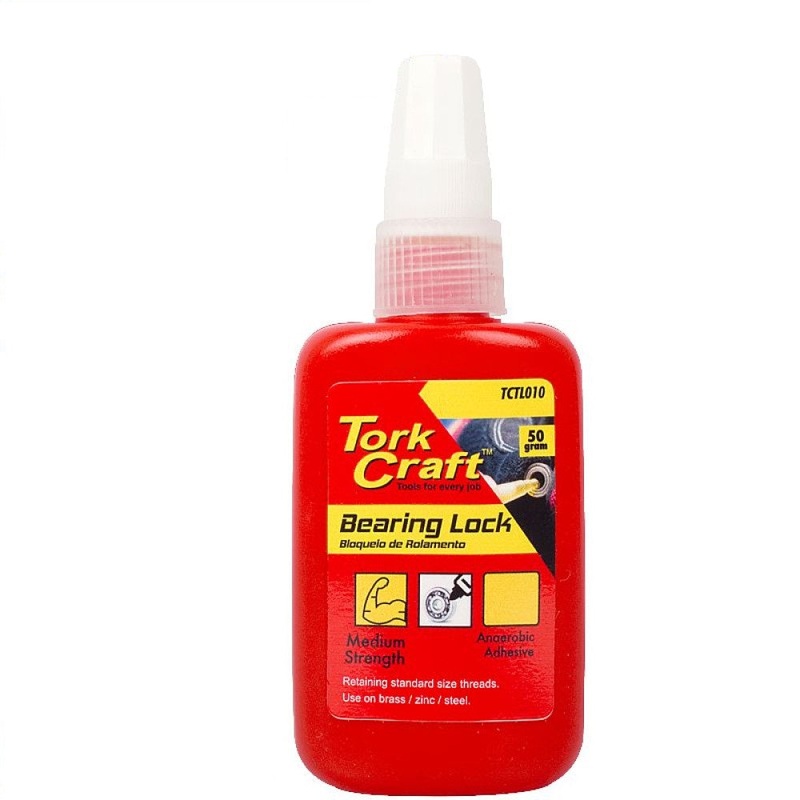 Yellow Medium Strength Bearing LockRetaining standard size threads, for use on brass / zinc / steel. Clean surface with an oil free cleaning solvent before applying adhessive.Use on:BrassZincSteelMedium StrengthAnaerobic adhesiveDirections:Clean the surfac