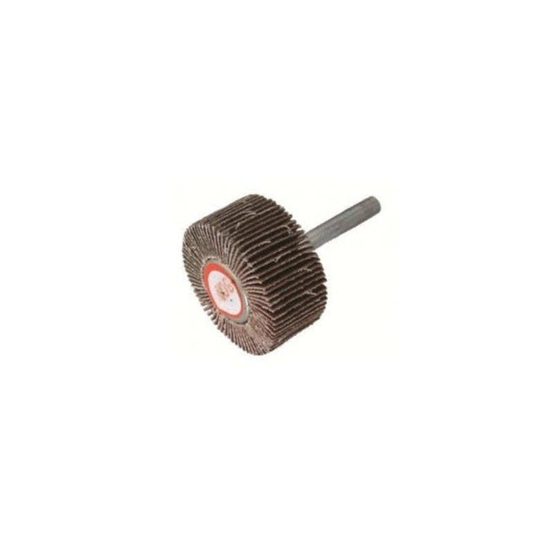 The flap a wheel has a 6mm steel shank and it runs through the wheel creating better balance to reduce operator fatigue. Used with portable drills or die grinders.
