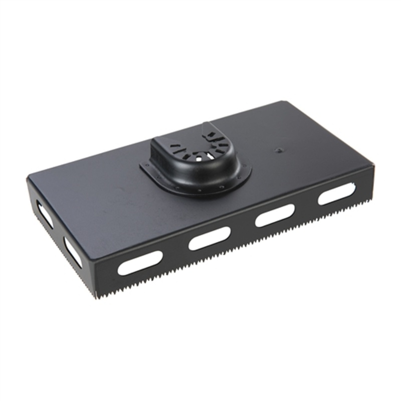 Universal open-backed design for use on plasterboard, wood and plastic. Ideal for fitting single-gang dry-lining boxes, metal boxes and pattresses. Compatible with Silverline, GMC and Triton Oscillating Multi-Tools, and also tool-free, quick-change and standard multi-tool machines.