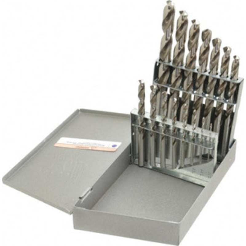 Drill Bit Set Type Jobber Length Drill Bits Number of Pieces 15 Tool Material High-Speed Steel Minimum Drill Bit Size (Frac Inch) 1/16 Maximum Drill Bit Size (Frac Inch) 1/2 Shank Type Straight Coating/Finish Bright/Uncoated Point Type Standard Drill Point Angle 118 Series T18 Drill Bit Sizes Included (Inch) 1/16 3/32 1/8 5/32 3/16 7/32 1/4 9/32 5/16 11/32 3/8 13/32 7/16 15/32 1/2 Step Increments 1/32 Maximum Hole Size 1/2 Overall Length 4.125 Contents (15) Jobber Length Drills Coolant Through No Drill Length Type Jobber Length UNSPSC Code 27112800 Storage Unit Material Metal System Of Measurement Inch Tool Application Metalworking, Multipurpose Drill Bits Tool Performance General Purpose Product Service Code 5133 Storage Unit Type Case