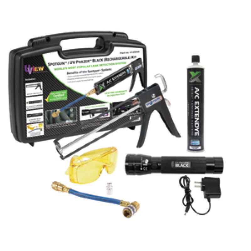Services up to 64 vehiclesIncludes: Phazer Rechargeable UV LED LIghtSpotgun injection gun with R-12 and R-134a adapters.8 oz Universal A/C ExtenDye with an enhanced additive package that boosts performance and increases the longevity of the A/C systemUV en